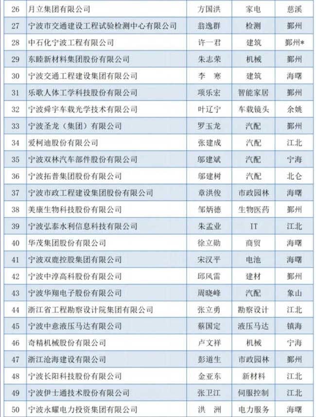 2023寧波市競爭力企業(yè)百強(qiáng)榜單