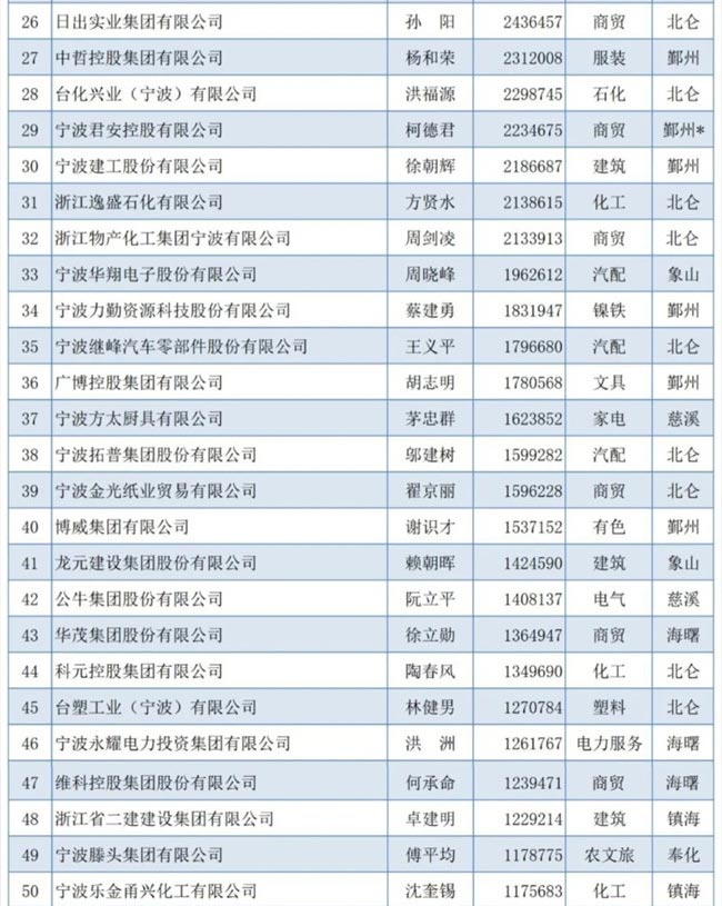 2023年寧波市綜合企業(yè)百強(qiáng)榜單