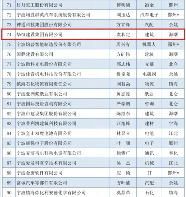 這份系列榜單不僅囊括了寧波實(shí)力最強(qiáng)的企業(yè),更是寧波經(jīng)濟(jì)邁向高質(zhì)量轉(zhuǎn)型發(fā)展的“晴雨表”。此次榮譽(yù)的收獲對(duì)華恒來說既是認(rèn)可也是動(dòng)力。