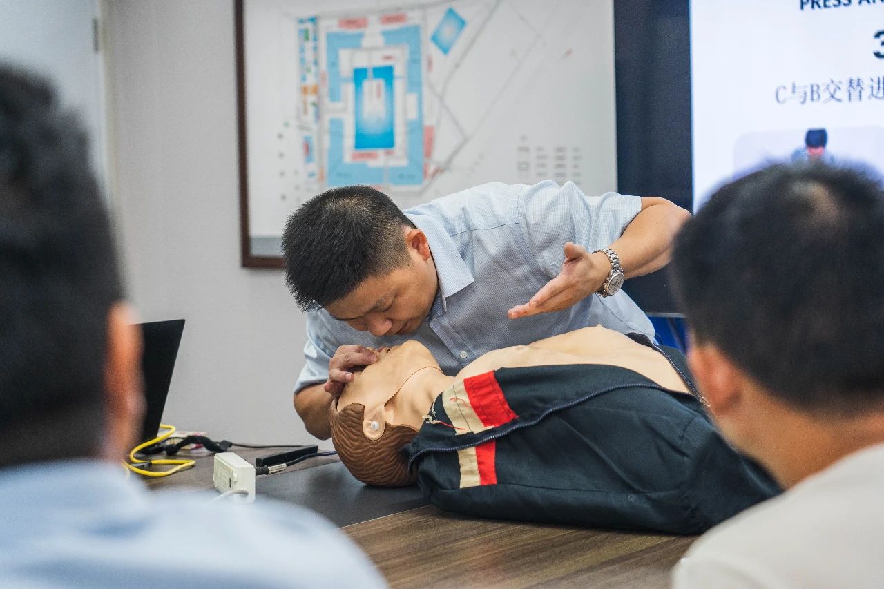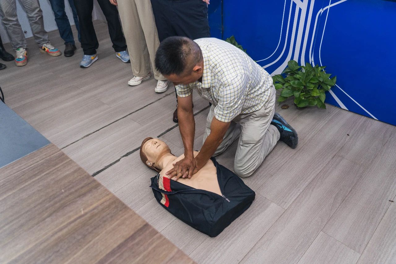 現(xiàn)場演示環(huán)節(jié),劉老師著重介紹了心肺復(fù)蘇術(shù)的操作要領(lǐng),強(qiáng)調(diào)“黃金四分鐘”的重要性,大家積極參與互動(dòng)體驗(yàn),將理論知識和實(shí)踐相結(jié)合,更好地對應(yīng)急救護(hù)知識融會(huì)貫通,現(xiàn)場學(xué)習(xí)氣氛濃厚。