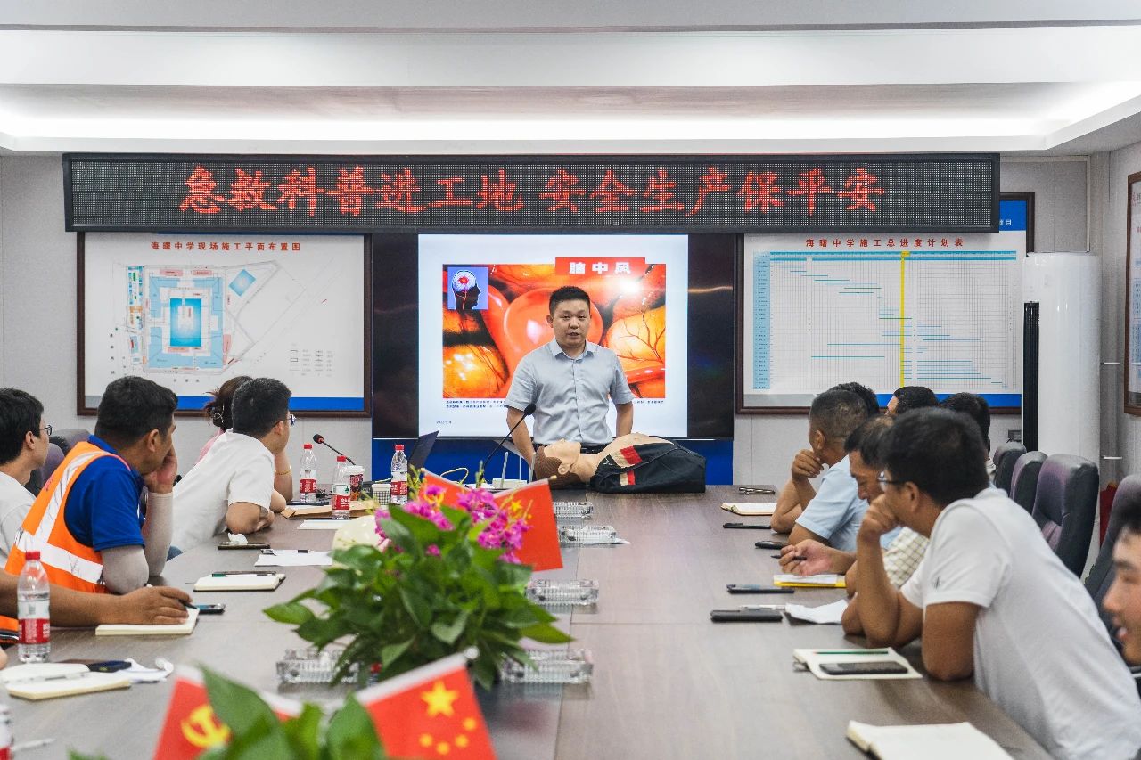 我司承建的海曙中學(xué)項(xiàng)目部臨時(shí)黨組織書記許婕在了解到項(xiàng)目部的工友們都希望學(xué)習(xí)急救知識,提高突發(fā)事件的應(yīng)急處置能力后,9月4日晚上,在海曙中學(xué)項(xiàng)目部舉辦了一場培訓(xùn)+實(shí)操+競賽的主題活動(dòng),開啟工地賦能新篇章。