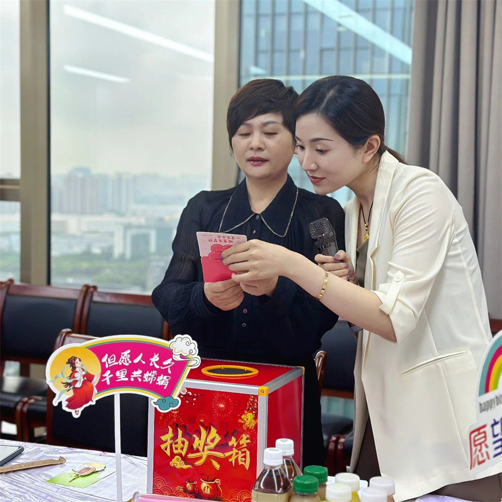 最后,集團副總經(jīng)理虞賽月女士親臨活動現(xiàn)場為我們的壽星抽取了特別錦鯉大獎,最終大獎得主是來自我們工程部的張岱,他在抽獎箱中的心愿賀卡中是這樣寫道的:我叫張岱,我來自工程部,祝愿公司發(fā)展越來越好,嘎嘎中標!