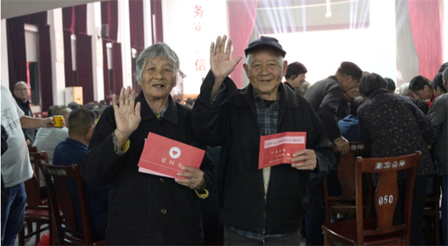 虞董和鄉(xiāng)鎮(zhèn)的領(lǐng)導(dǎo)們共同為村里的貧病殘老人,優(yōu)秀貧困生發(fā)放慰問(wèn)金。