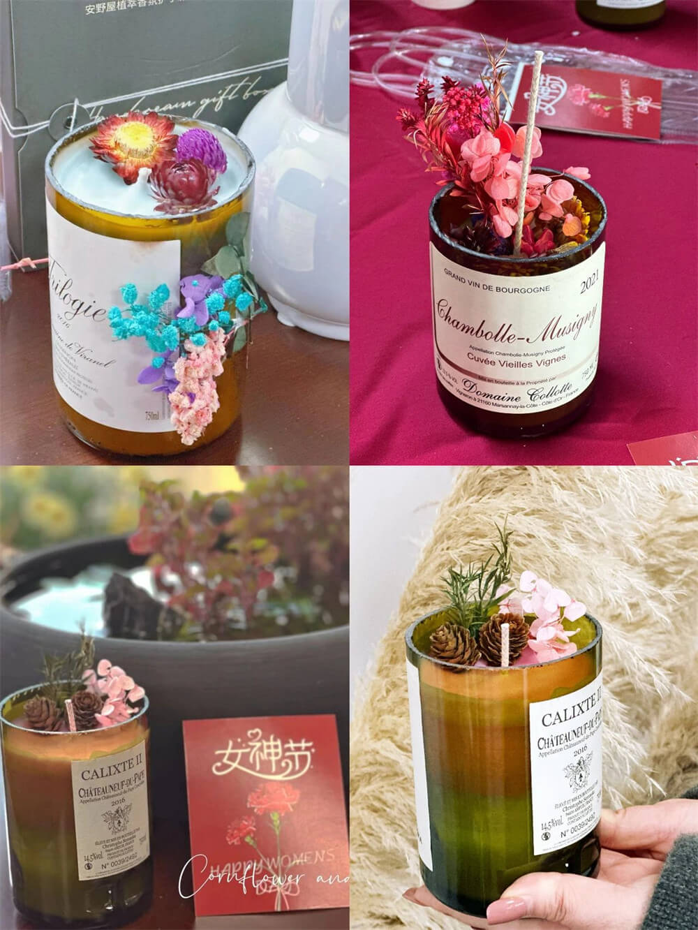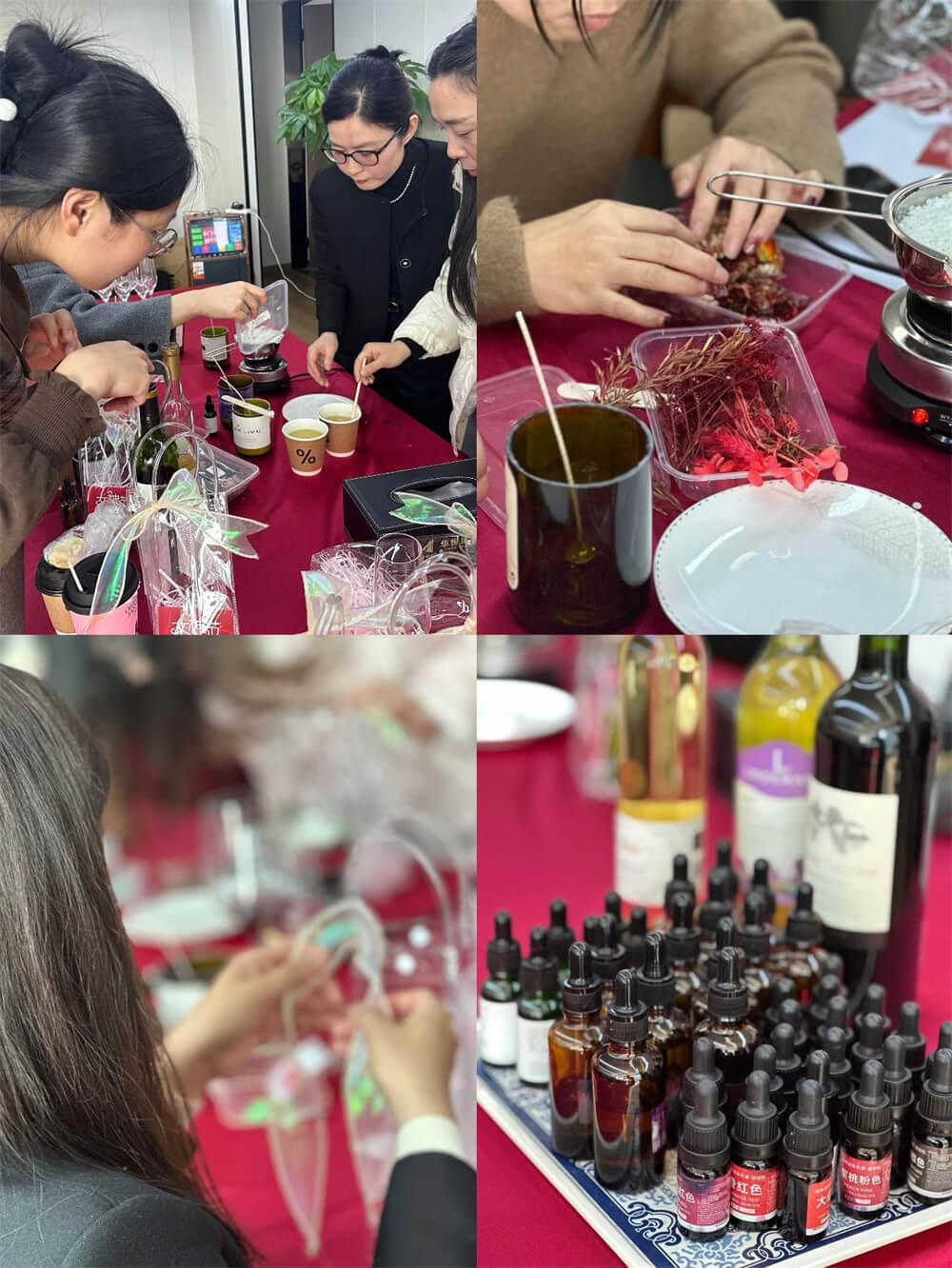 操作時,先加熱融化大豆蠟,在杯底粘好燭芯,接著,滴入精油,當(dāng)蠟油半凝固時,加上各式干花點(diǎn)綴,讓蠟燭更加美觀獨(dú)特,最后,耐心等待蠟油完全凝固,參加活動的女神們欣喜地相互展示自己的作品,每一個作品都因?yàn)楠?dú)有的審美與情感,更顯出獨(dú)一無二的美好!