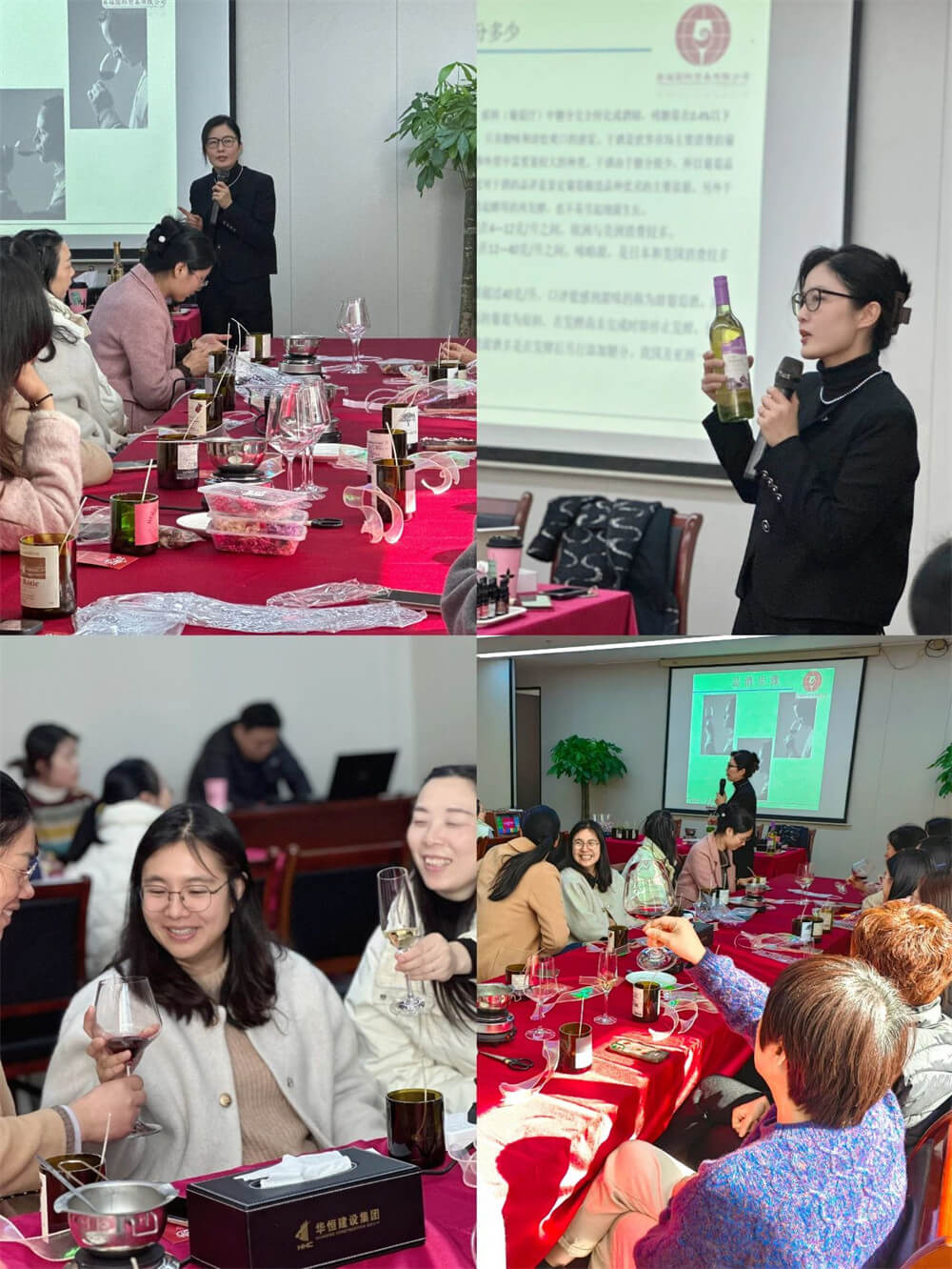 溫馨高雅的環(huán)境,舒緩悠揚(yáng)的音樂,紅酒品鑒會在浪漫的氛圍中開始?;顒犹貏e邀請到了一位紅酒屆的時尚達(dá)人,寧波卷福貿(mào)易有限公司總經(jīng)理、 B.CHOUETTE-貝柏軒(法國波爾多)合伙人、esw品酒師陳彩鳳老師,帶領(lǐng)大家從紅酒文化、歷史、地域劃分、葡萄種類、釀酒工藝到品評鑒賞,全方位領(lǐng)略葡萄酒的種植、采摘、榨汁、發(fā)酵、窖藏、內(nèi)外包裝、釀造一流葡萄美酒的工藝以及紅酒禮儀進(jìn)行了講解。全體女職工一起品味紅酒文化,感受紅酒詩韻,走進(jìn)微醺優(yōu)雅的紅酒世界,了解一顆葡萄的奇幻旅程。